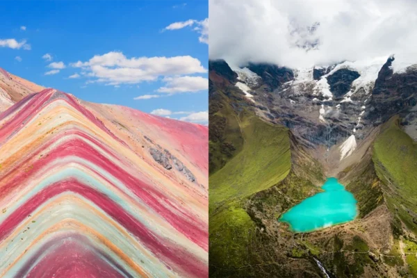 Explore two of Cusco’s most stunning destinations on a single nature adventure tour: Humantay Lagoon, with its turquoise waters at the foot of the Salkantay mountain, and the impressive Rainbow Mountain (Vinicunca), famous for its reddish, ochre, and green hues that paint the Andes mountain range. This 2-day/1-night experience connects you with the magic of the high Andean landscapes and offers unique panoramic views.