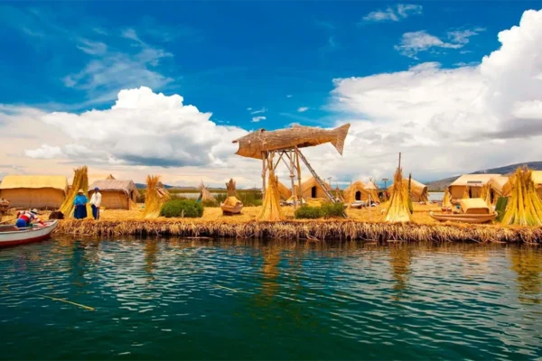 Embarcaremos em uma lancha que nos levará pelas águas cristalinas do Lago Titicaca. Durante a viagem, seu guia compartilhará informações sobre a geografia, a fauna e os costumes locais.