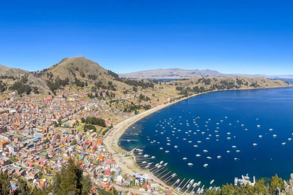 Partindo de Puno, iniciaremos a viagem de ônibus turístico até a fronteira com a Bolívia, onde concluiremos os trâmites migratórios. Em seguida, continuaremos por estrada até Copacabana, margeando o Lago Titicaca com suas paisagens andinas de tirar o fôlego.