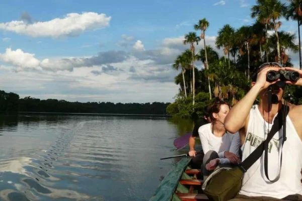 Você caminhará entre árvores gigantes, descobrirá espécies únicas e navegará de canoa pelas águas calmas do Lago Sandoval, lar de jacarés, aves exóticas e imponentes ariranhas. Este passeio de um dia oferece contato direto com a floresta amazônica em seu estado mais puro: sem pressa, sem filtros, só você e a natureza.